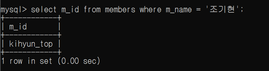 select 필드명 from 테이블명 as a가상의필드명 join 테이블명 as b가상의테이블명 on a가상의테이블명.필드명=b가상의테이블명.필드명 where 가상의테이블명.필드명;