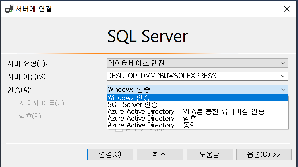 Windows에는 root 없음. 관리자모드 사용(mysql의 root와 같음) . windows 인증으로 사용
